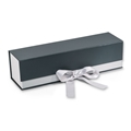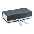 Hochwertig bezogener Festkarton mit Strukturprägung und dekorativem Satinband.