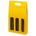 Die eingeklappten Fensterausstanzungen trennen die Flaschen voneinander und ermöglichen den Blick auf das Flaschenetikett.