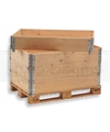 Die Paletten-Rahmen sind aus gehobeltem Nadelholz (Wandstärke 20 mm), diagonal klappbar durch 4 verzinkte Scharniere.