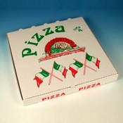 + Wellpapp-Faltkarton mit Druck: rot / grün für 6 Pizzagrößen lieferbar.