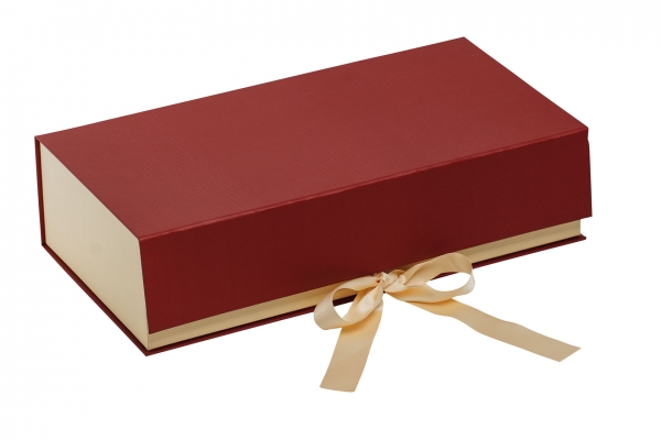 Hochwertiger Festkarton mit Strukturprägung und edlem Satinband.