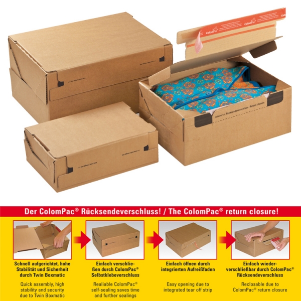 Professioneller Versand und Rückversand in einer Box durch den ColomPac Rücksendeverschluss