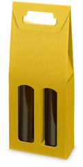 Die eingeklappten Fensterausstanzungen trennen die Flaschen voneinander und ermöglichen den Blick auf das Flaschenetikett.