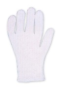 Handschuhe, Trikot-Baumwolle, schneeweiß gebleicht, Putzhandschuh, die Farbe läßt sofort Schmutz erkennen. Herrengröße 24cm, Packung=12.00 PAAR, Umverpackung=600.00 PAAR, Palette=600.00 PAAR