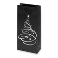 Tragetasche aus Papier mit einer matten Oberfläche, einer feinen Streifenprägung und einer goldenen Heißfolienprägung.