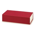 Hochwertig bezogener Karton mit hochwertiger Strukturprägung in Textiloptik und Magnetverschluss, innen farbig.